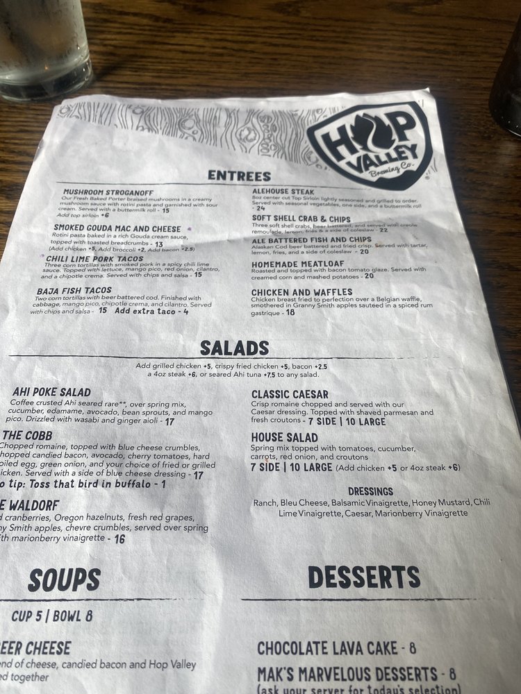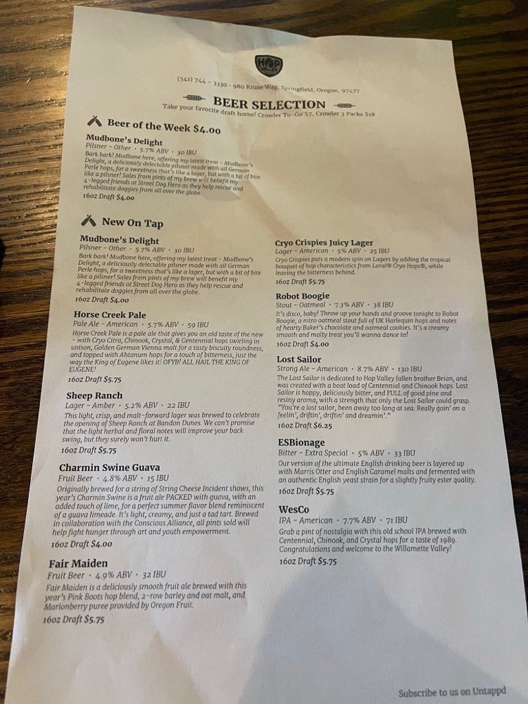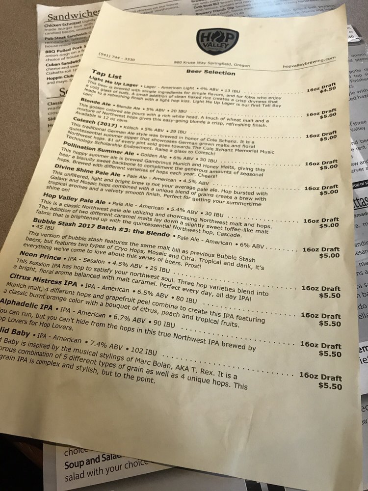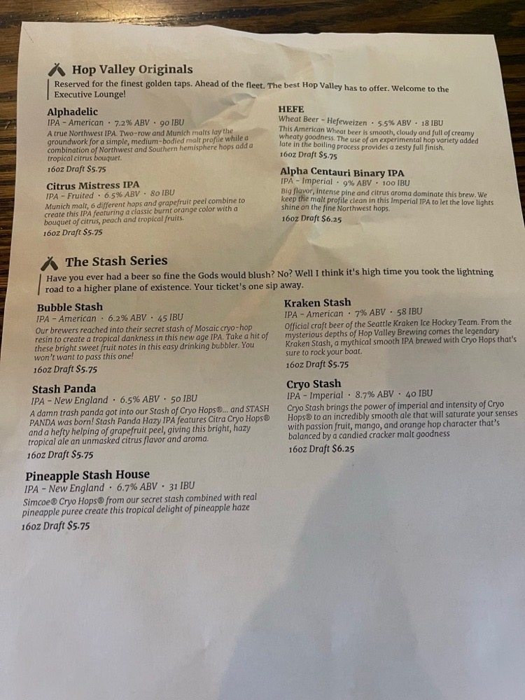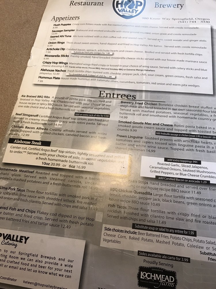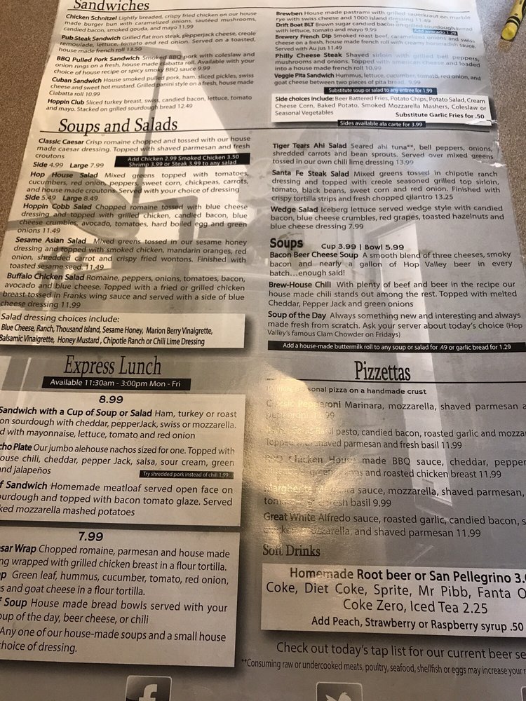 Hop Valley Brewing Company, located in Springfield, Oregon, offers a diverse menu featuring appetizers like onion rings and artichoke dip to savory soups like bacon beer cheese. Customers praise the food quality and friendly staff. Reviews highlight the Bubble Stash beer and hearty dishes like loaded fries and street tacos. The ambiance is described as cozy and relaxed, with attentive service. While prices are noted to be slightly high, the overall experience is positive. The variety of craft beers and delicious food options make Hop Valley Brewing Company a must-visit for beer and food enthusiasts alike.